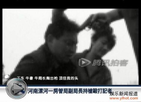 昨日,一则题为“河南漯河一房管局副局长持枪殴打记者”的视频在各大论坛和微博上疯狂传播,网帖称“记者前去采访漯河违章别墅群,结果被漯河市召陵区房管局副局长牛豪用枪顶头狂殴威胁”。该网帖引发了许多网友的转发和评论,许多网友对牛豪也展开了“人肉搜索”。